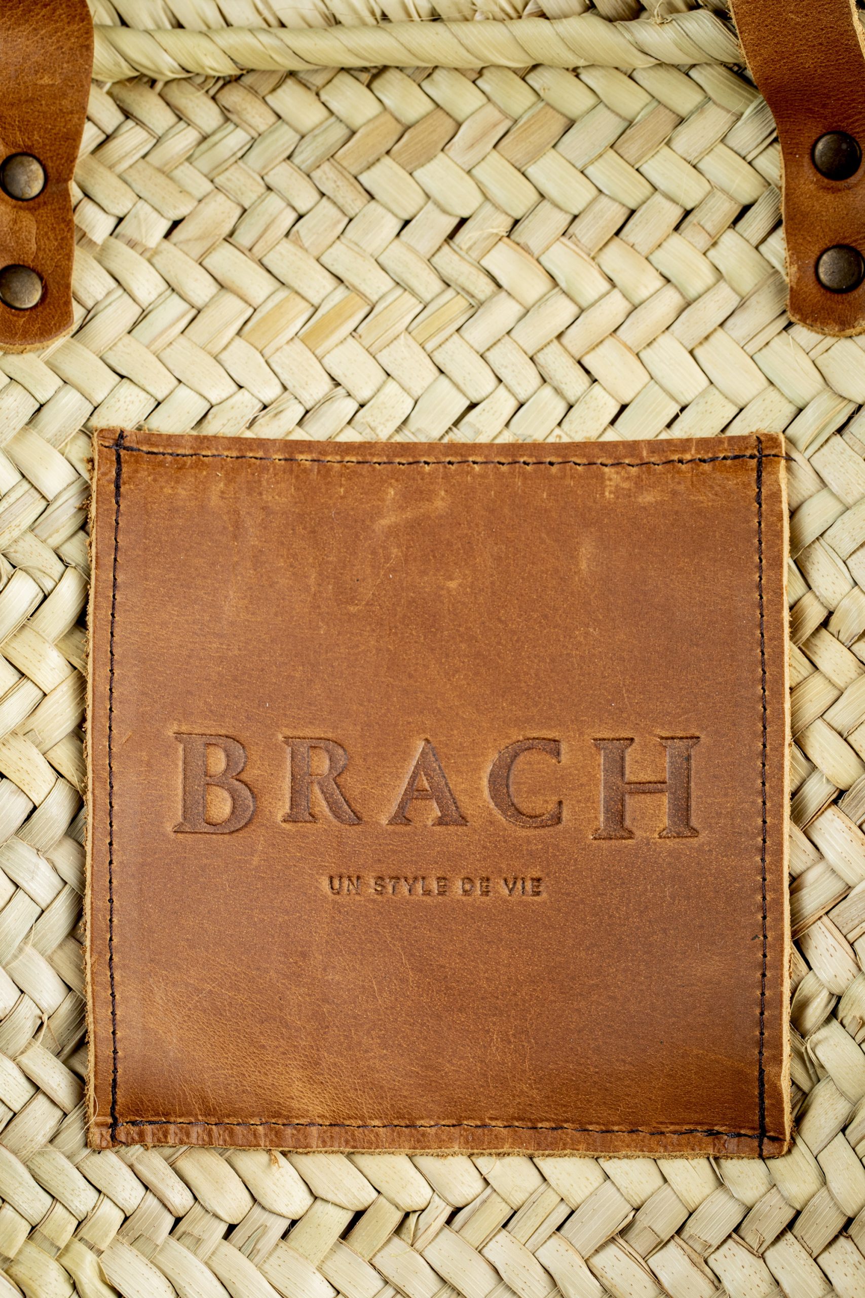 Handcrafted wicker basket made in Morocco, embroidered in Portugal.